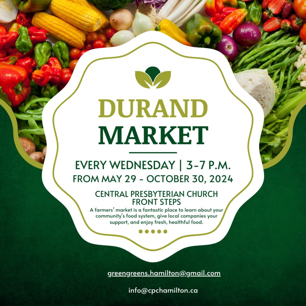 Central Presbyterian Church Front Steps (corner of Caroline St and Charlton Ave. W.).